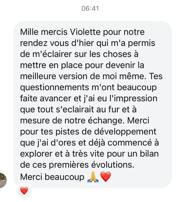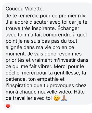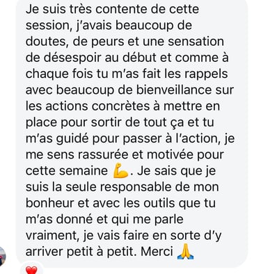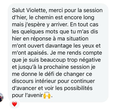 ma promesse : te donner le déclic dont tu as besoin en une seule session. parce que c'est mon talent. mon regard extérieur sur ta situation te permettra de réaliser certaines choses dont tu n’as pas conscience pour faire des nouveaux choix et repartir dans le bon sens. une session au prix le plus abordable possible pour que le plus grand nombre puisse en profiter 🤍